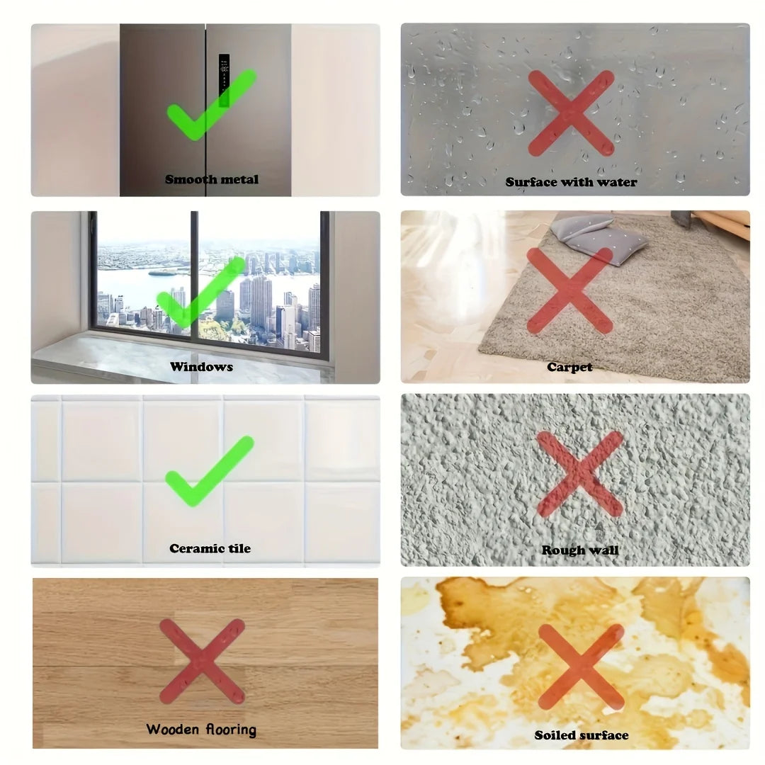 It works best on clean, smooth surfaces such as tiles, windows, polished floors, and glass doors.
